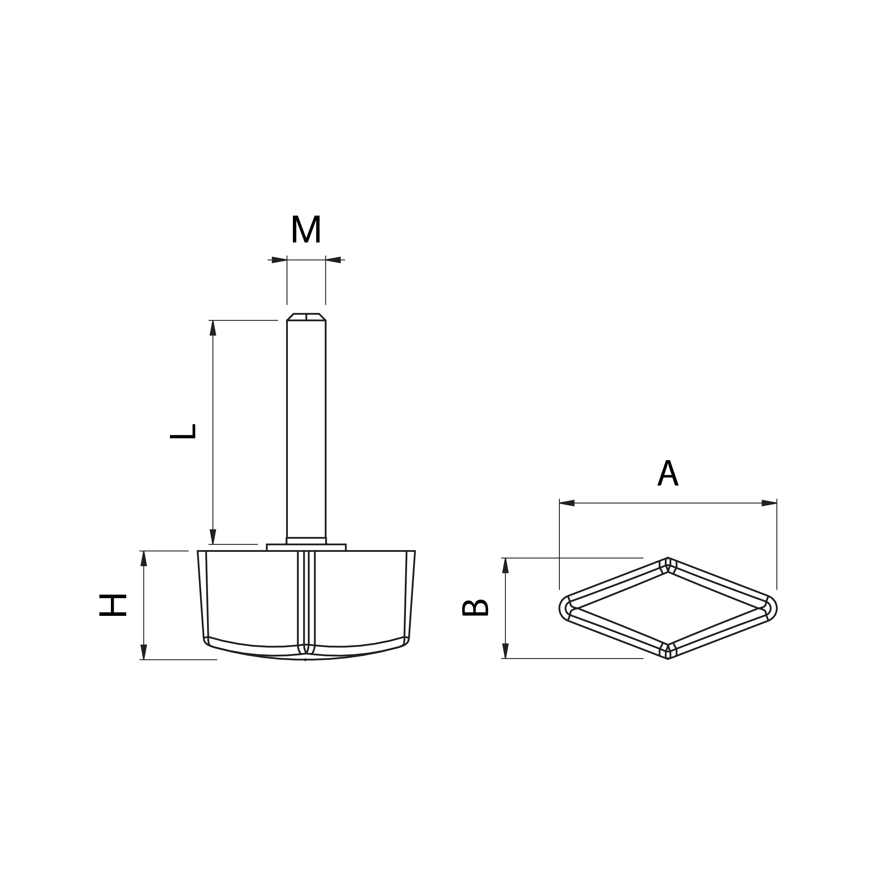A (mm) = 33; B (mm) = 15; H (mm) = 16,5; L (mm) = 35; M (mm) = 6