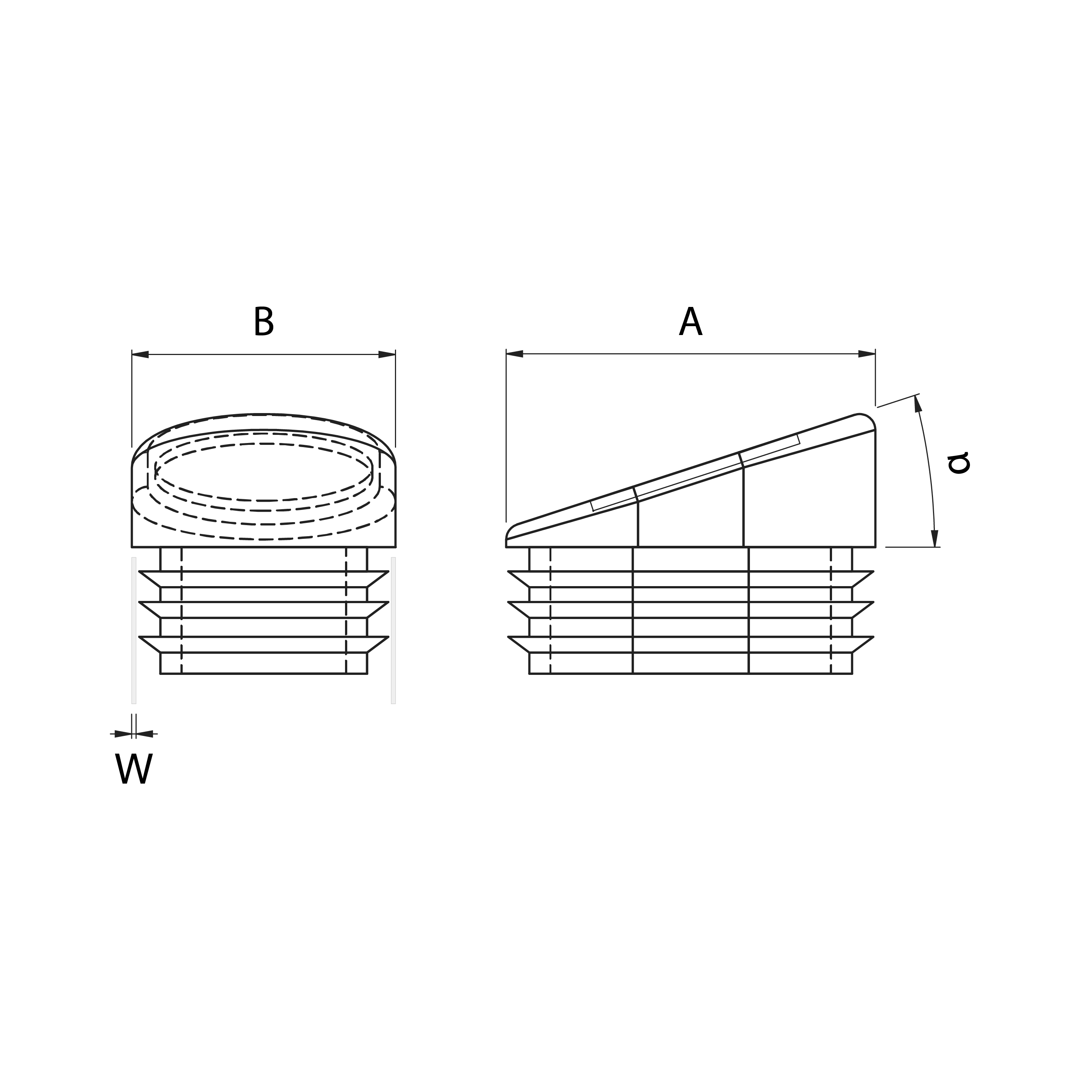 W = 1,5-2,0; A (mm) = 35; B (mm) = 25; H (mm) = 5,00 – 15,00; h (mm) = 12; Kot (°) = 18